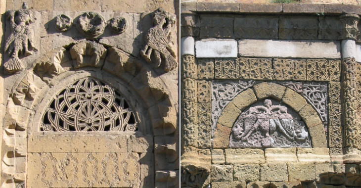 İlhanlı döneminin etkisiyle mimari tezyinatında, simgesel, fantastik ve kozmik özelliklere sahip figürler kullanılmıştır. Çift başlı kartal, siren, yırtıcı hayvanlar, hayat ağacı, insan kabartmaları bu dönemde sıkça kullanılmıştır. Bu dönemin önemli eseri olan Niğde Hüdavent Hatun türbesi figürlü kabartmaları konu, stil ve sembol bakımından dikkat çekicidir. Türbede yüksek kabartma ile işlenen sirenler, aslanlar, çift başlı kartal ve bitkisel bezemeler arasına gizlenmiş insan figürleri dikkat çekicidir.