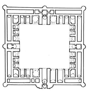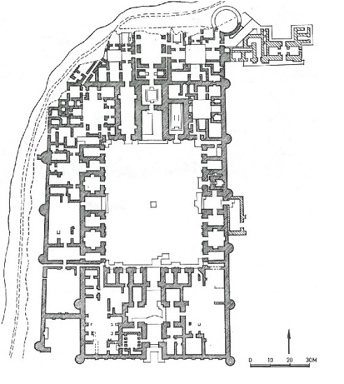 Karahanlı saraylarında görülen dört eyvandan oluşan avlu şeması Gaznelilerde daha da geliştirilmiştir. Bu şemayı tüm saray yapılarında görmek mümkündür.