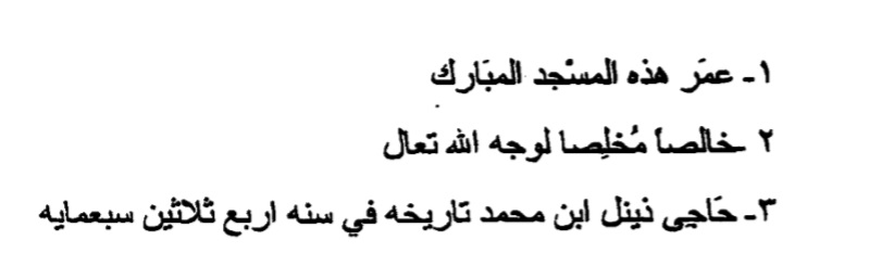 Hacı Zeynel değil, Hacı Özbek b. Mehmed tarafından tarafından yaptırılmıştır. Oysaki kaynak olarak verilen yayınlarda doğrusu geçmektedir. Abdülhamit hocanın çevirisinde büyük sıkıntı var. Doğrusu şu şekildedir.