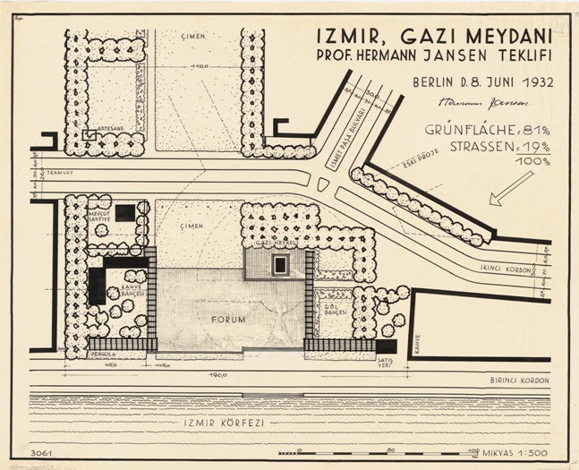 1922 yılında gerçekleşen İzmir yangını sonrası şehir ilk olarak Danger kardeşler tarafından imar edilmiştir. 1931 yılında Behçet Uz’un belediye başkanı olduğu dönemde Danger kardeşler tarafından hazırlanmış olan planını ekonomik şartlar nedeniyle uygulanabilir bulunmamıştır. Bunun üzerine, Hermann Jansen tarafından yeni bir plan hazırlanmıştır. Hazırlanan bu plan birebir olarak uygulanmasa da uygulama maliyetini düşürmek adına ana fikirleri kabul görmüştür.