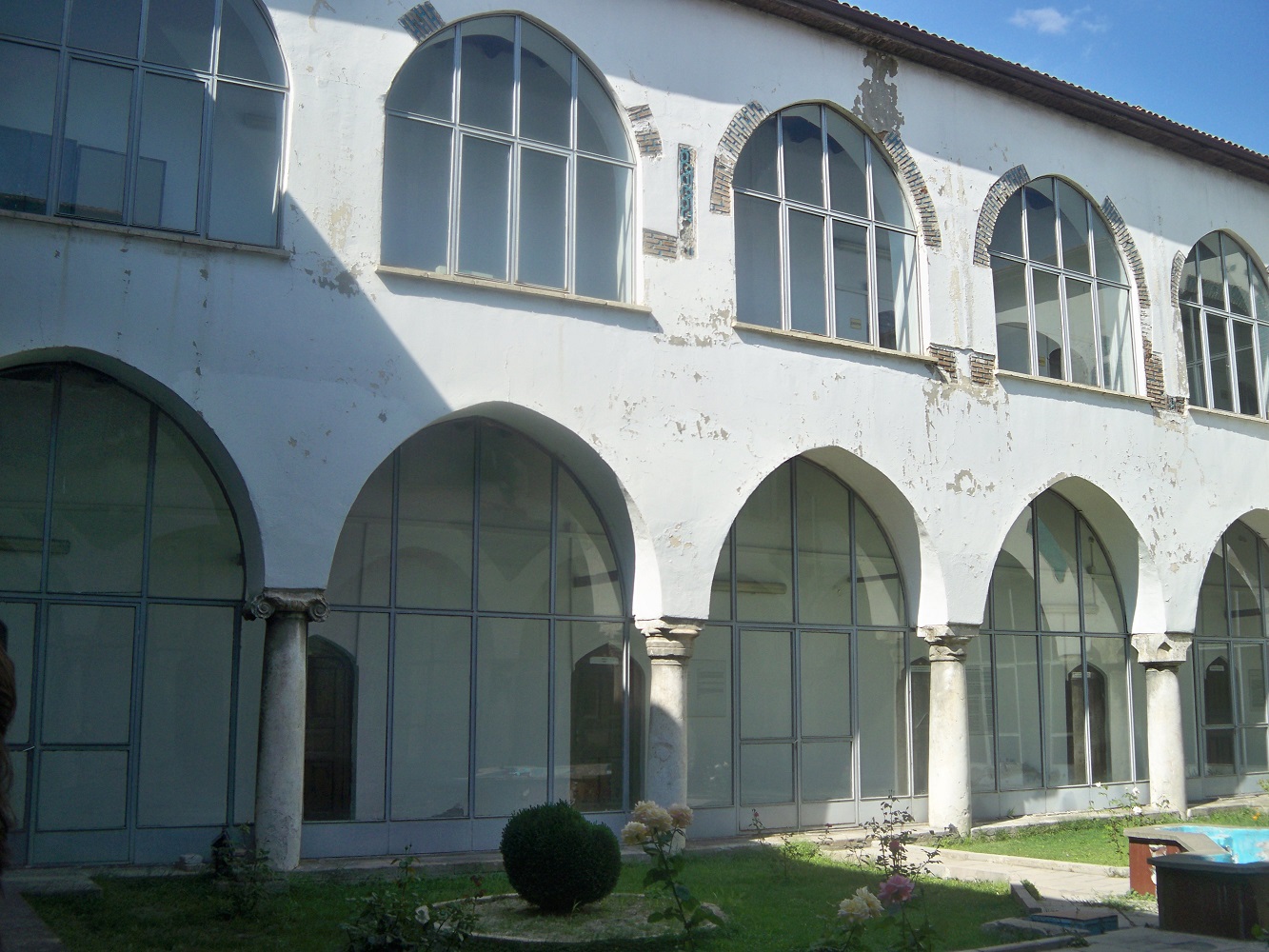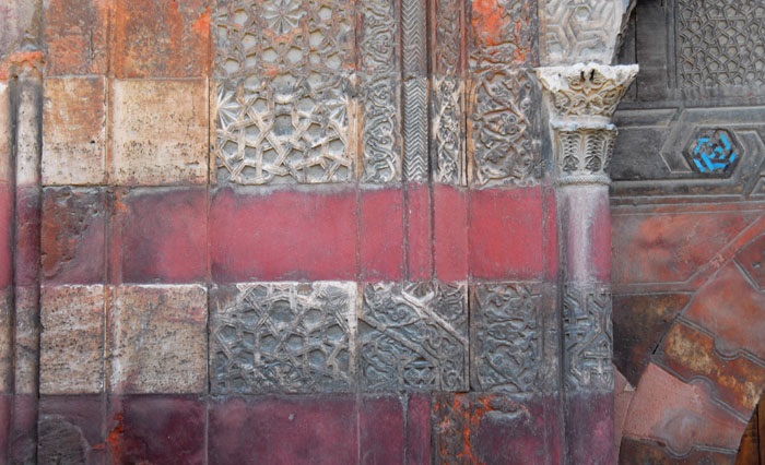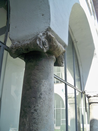 Avlu revak kemerlerinin üzerine oturduğu bazı sütun başlıklarında, devşirme malzeme kullanılmış olup, süsleme programının bir parçasını oluşturmaktadır.