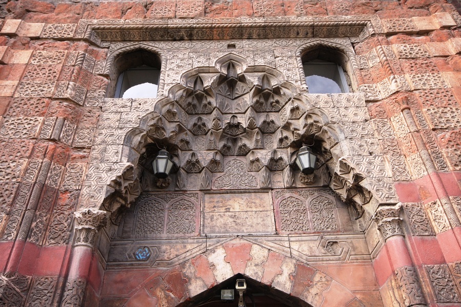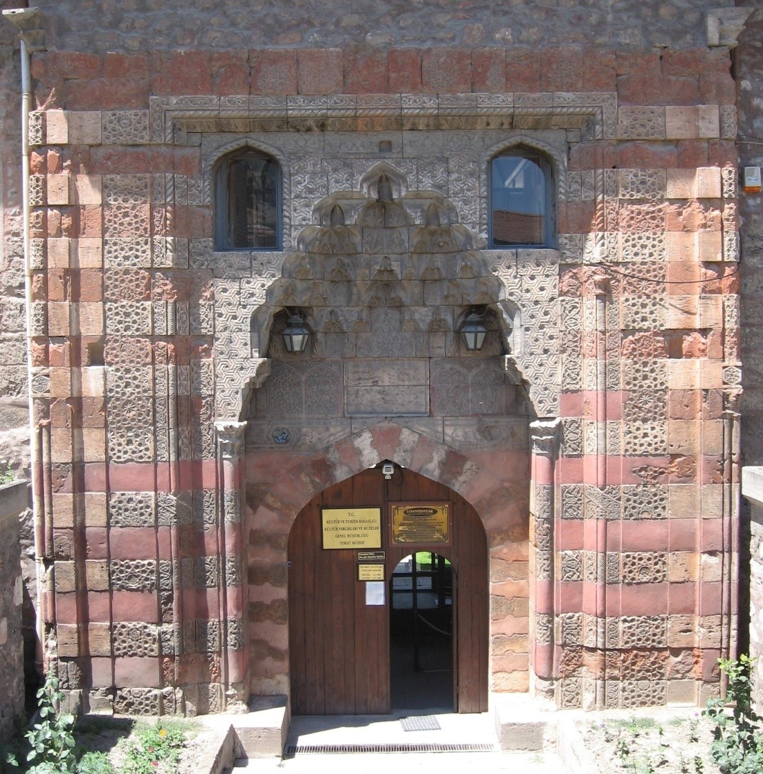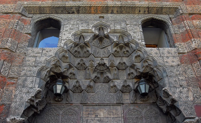 Sivri kemerli kapının üzeri, yedi sıralı mukarnas kavsara ile örtülmüş olup, kavsaranın iki yanında, sivri kemerli küçük pencereler bulunmaktadır. Bu pencerelerin çerçeveleri, sarmal bir motif ile bezenmiştir. Kavsara köşeliklerine sonsuz geçmeler yapan geometrik motifler yapılmıştır.